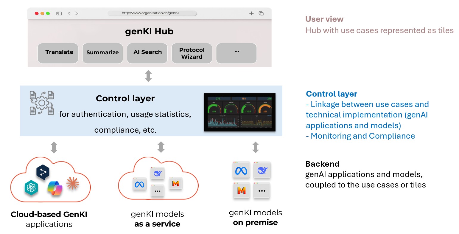 The pragmatic approach of a ‘platform for central AI services’ combines three layers: